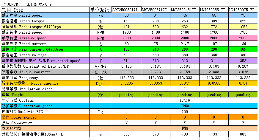 快速注塑机专用伺服电机1700R/M LDT25004517I